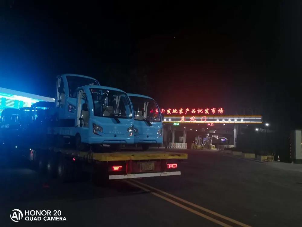 2020年8月15日早7:38,伴隨著(zhù)瓜果蔬菜的芬芳,久違的新發(fā)地批發(fā)市場(chǎng)正式復市。隨之正式上崗的還有20輛綠友電動(dòng)貨斗車(chē)。